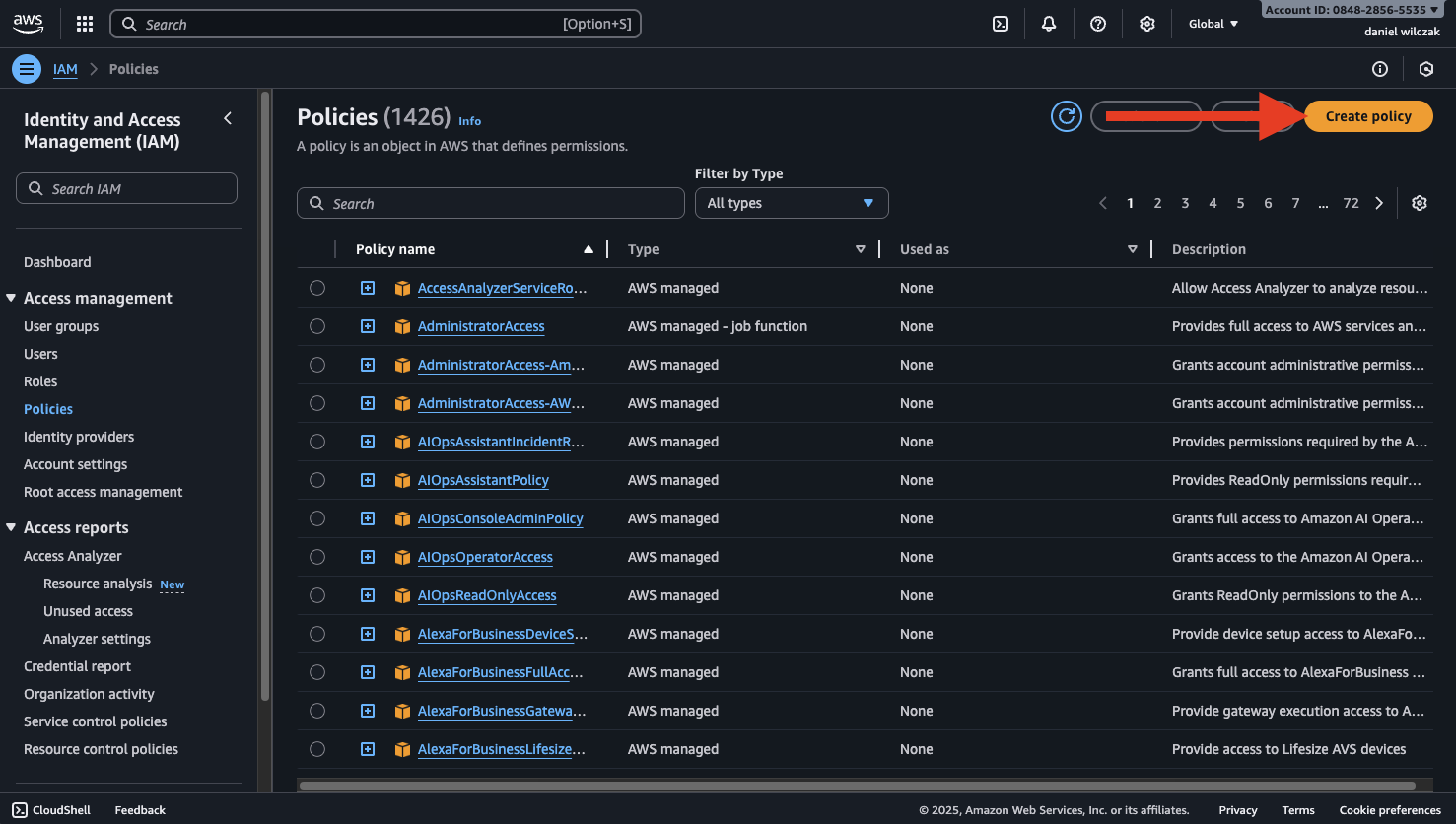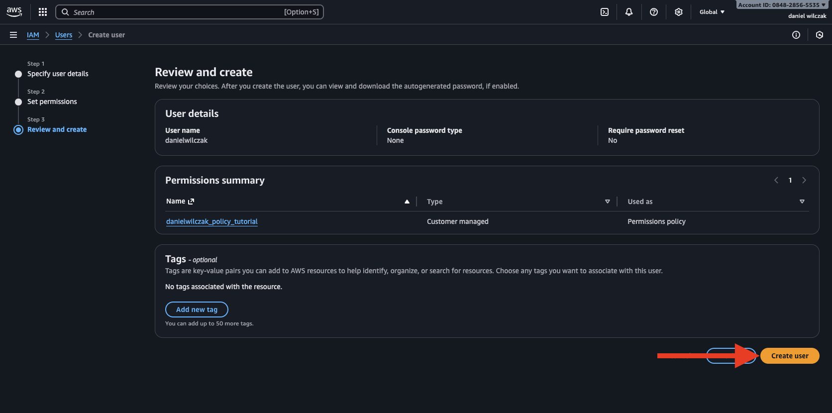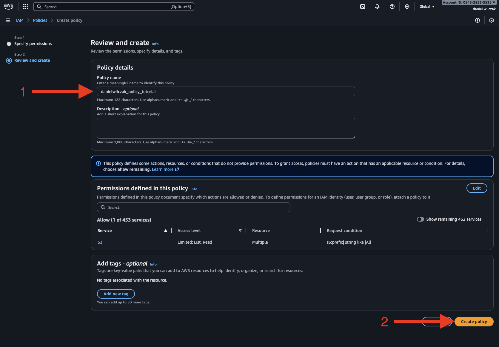Give the policy a name, make sure to remember this name we will need it later. Click "Create Policy".