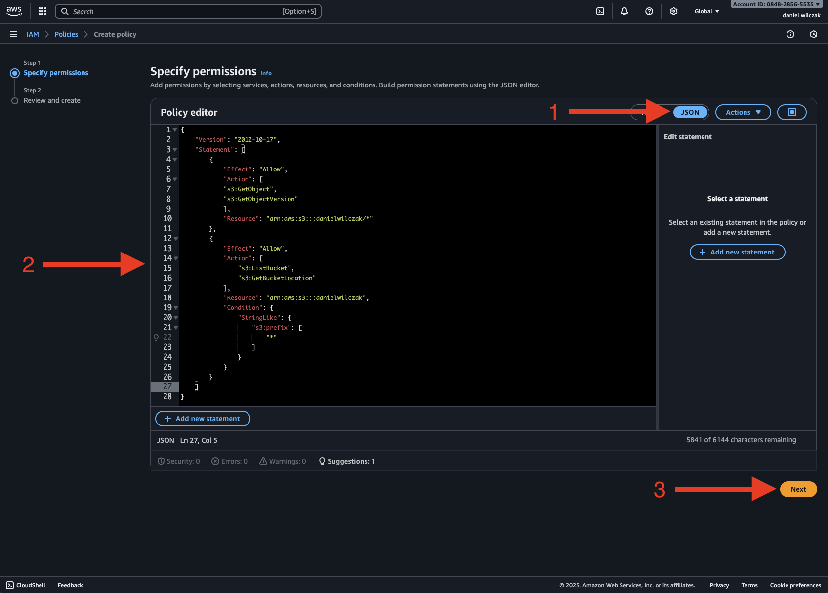 Next we'll want to click json and add the JSON below and updating our ARN.