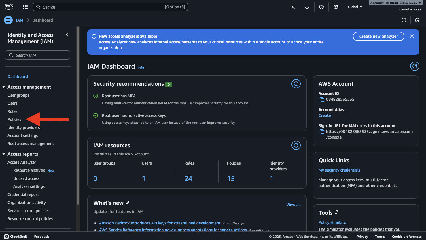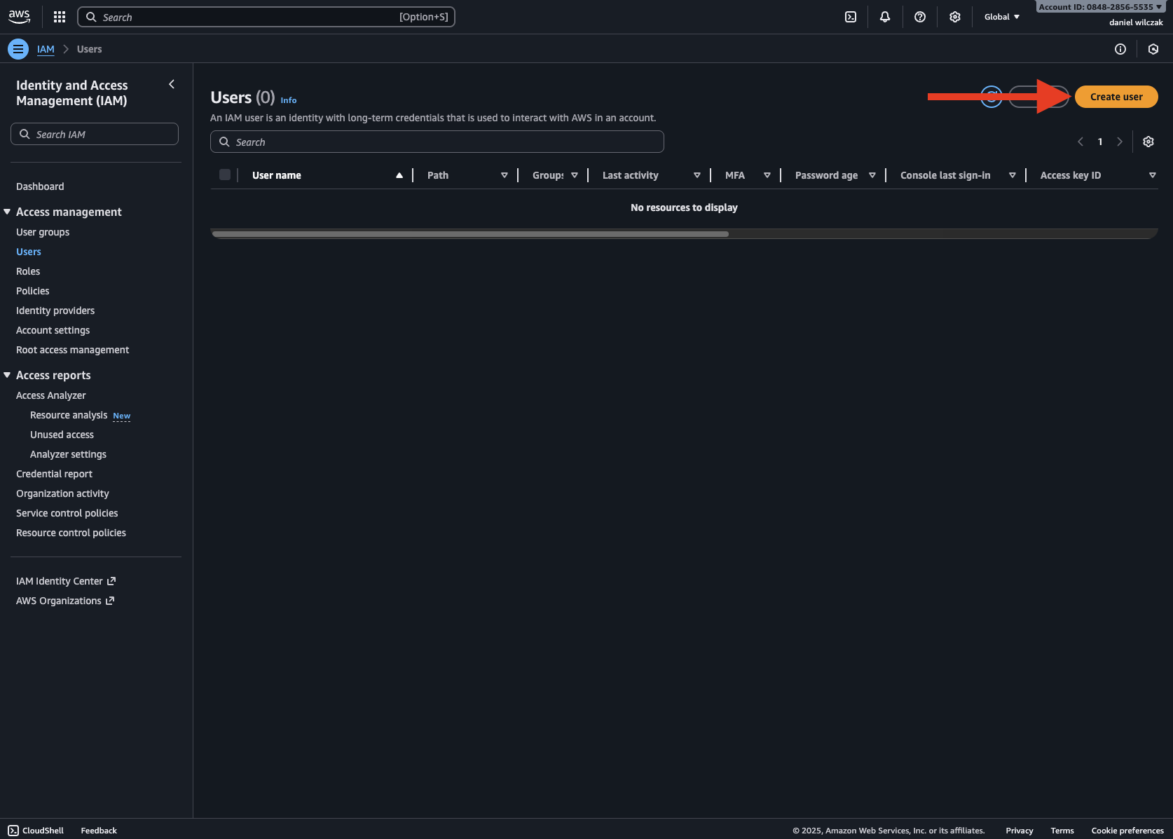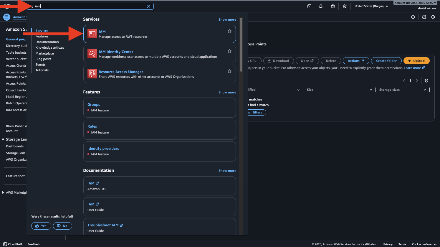 Lets setup a read policy that we later apply to a user that will then be used by Snowflake to access the bucket. Search and click on "IAM".