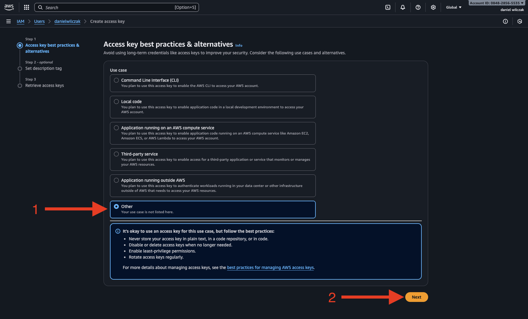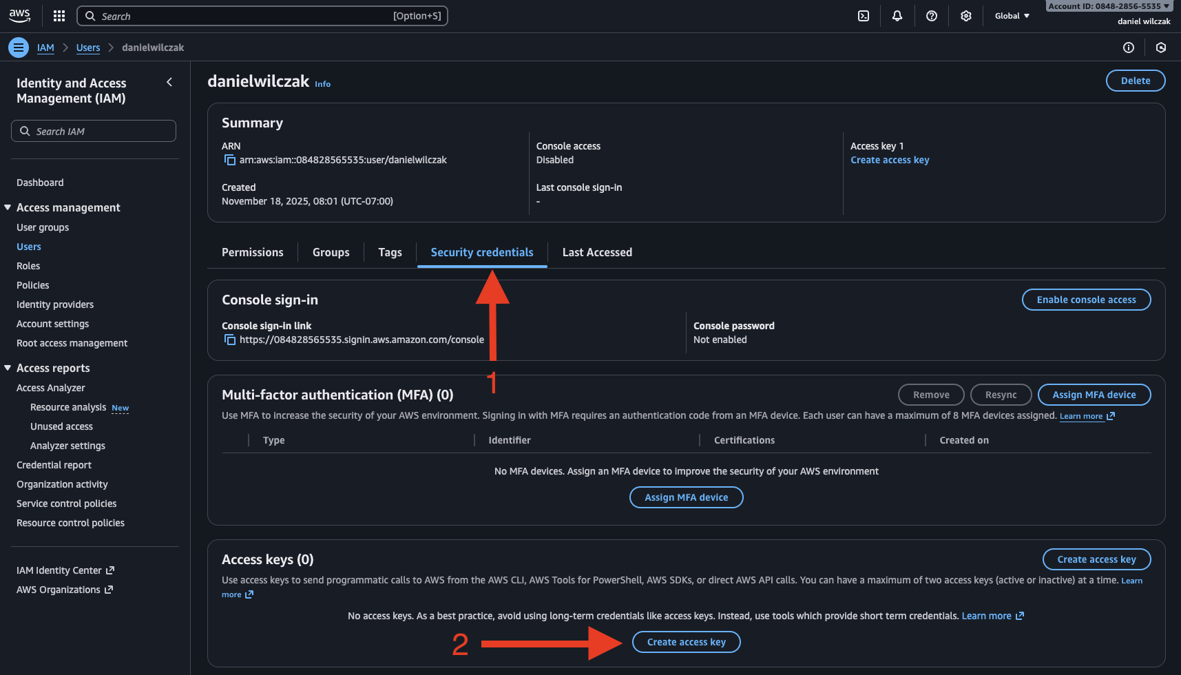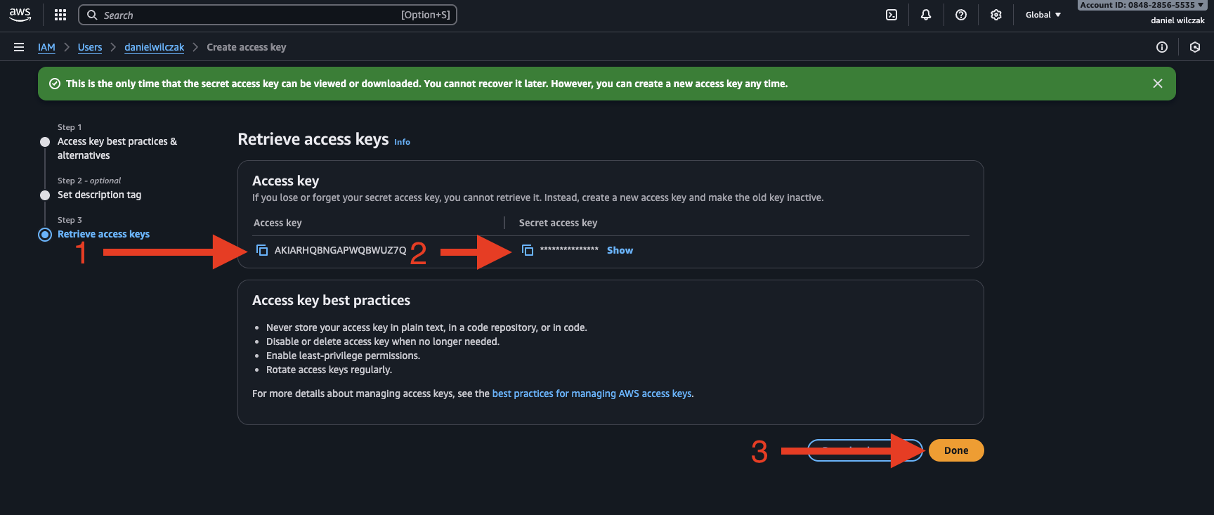 Copy your access key and secret we will use this in Snowflake in the next step.