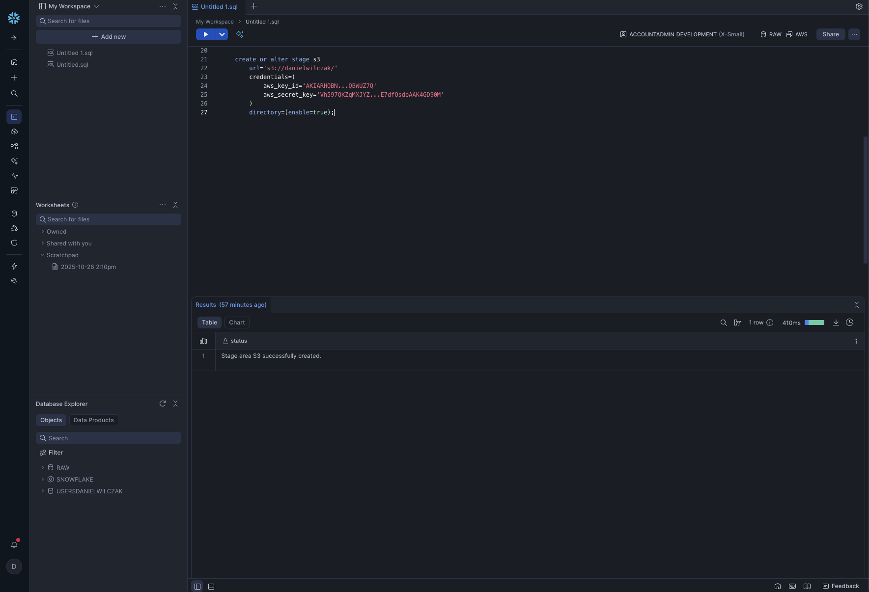 In this tutorial we will show how to generate a key and secret for an S3 bucket and then use that in Snowflake to create a stage.