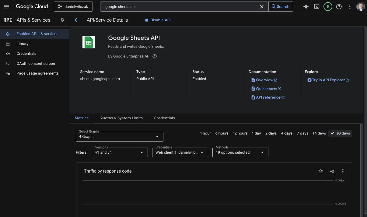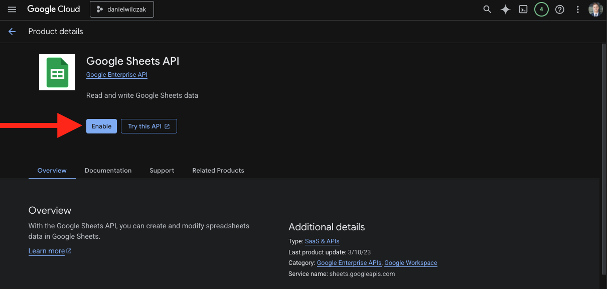 Enable Sheets API