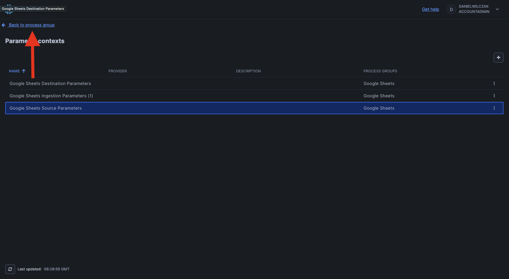 Lets head back to openflow and right click the google sheet connector and then parameters.