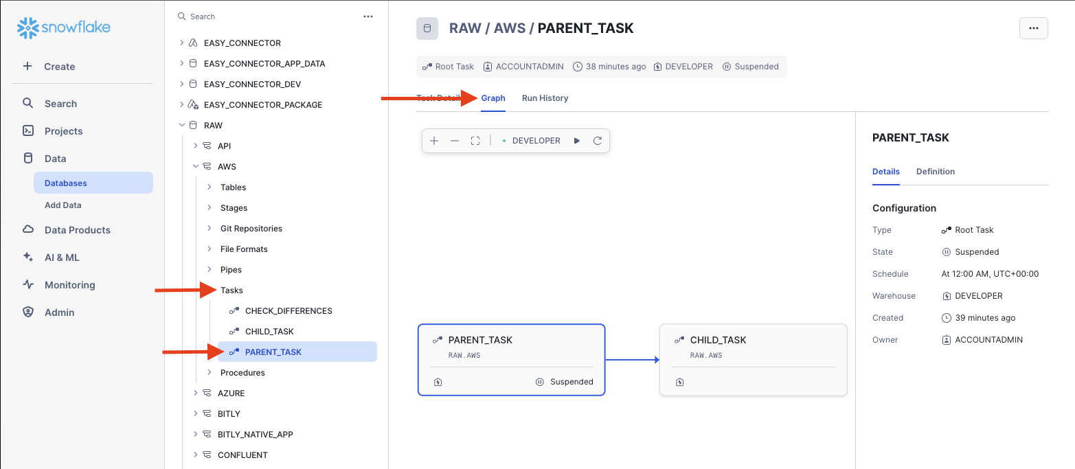 For the official Snowflake documentation this tutorial was based on: https://docs.snowflake.com/en/user-guide/tasks-graphs#create-a-task-graph