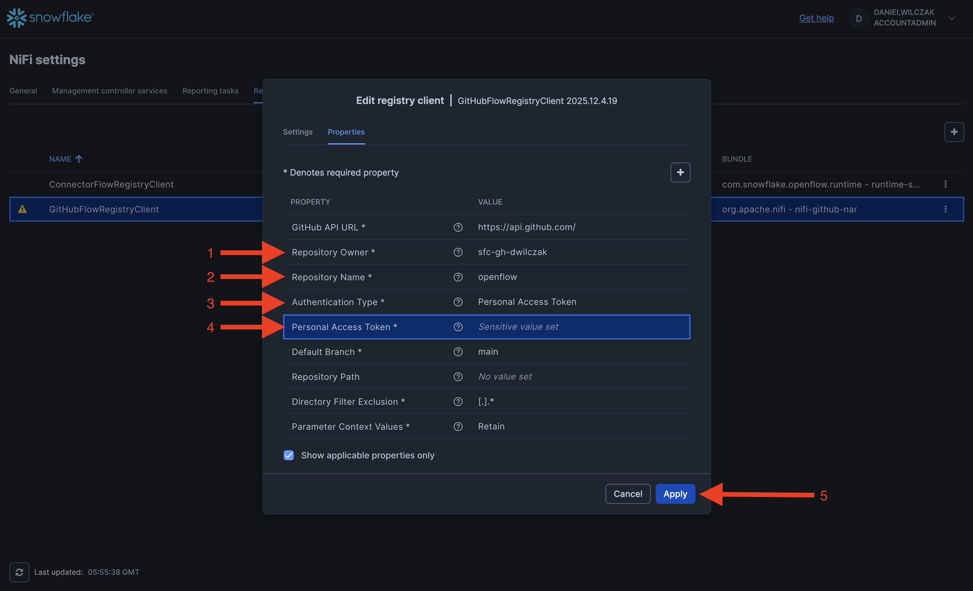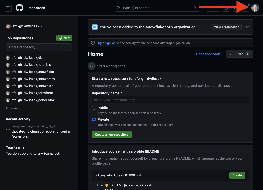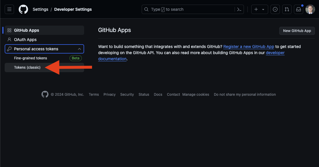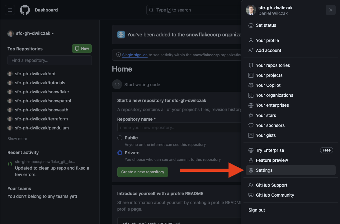 We will need a persoanl access token to allow Openflow to work with our Git repository. First lets navigate to the token page.