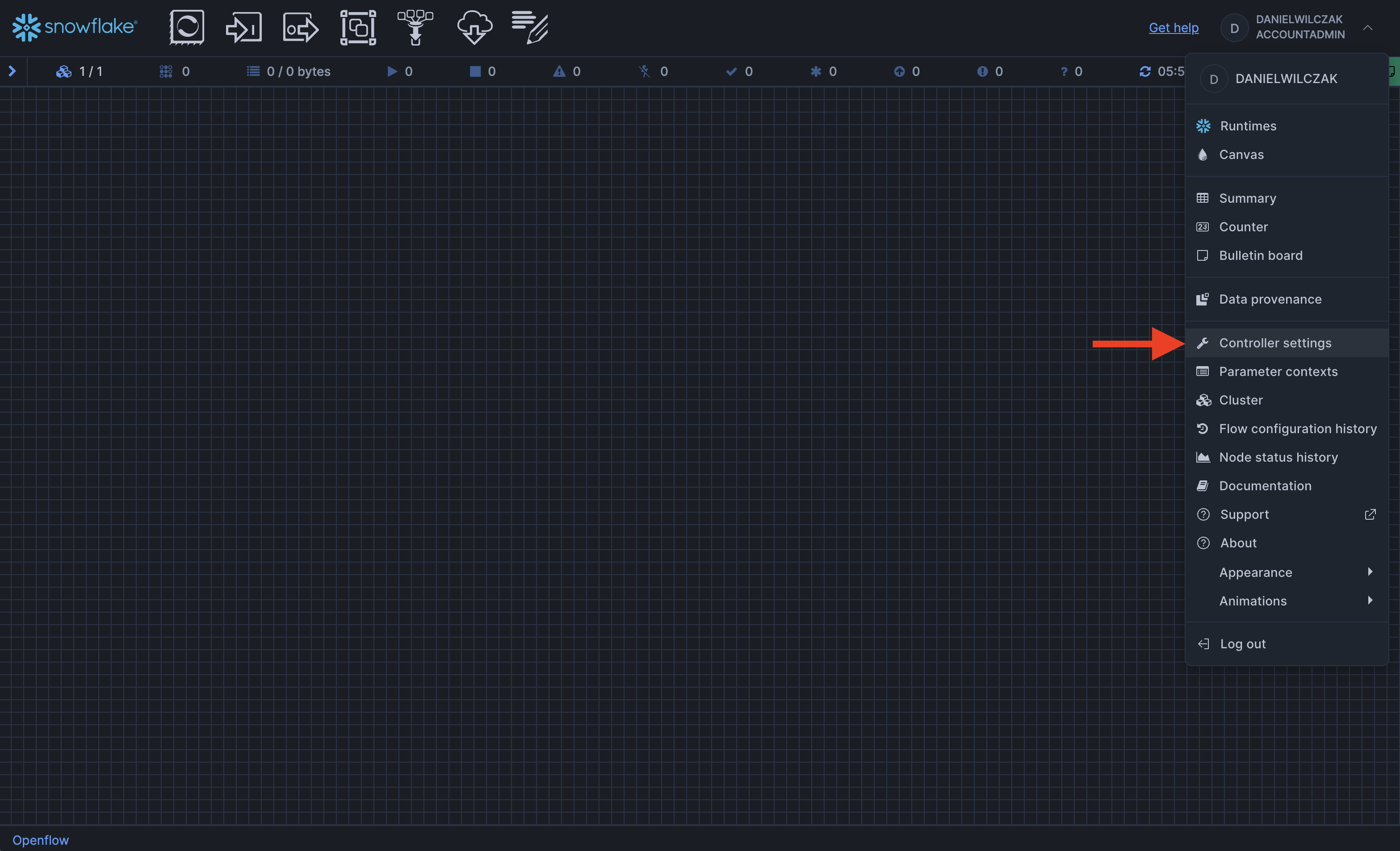 Next we'll head into openflow to setup our runtime and add the connector.