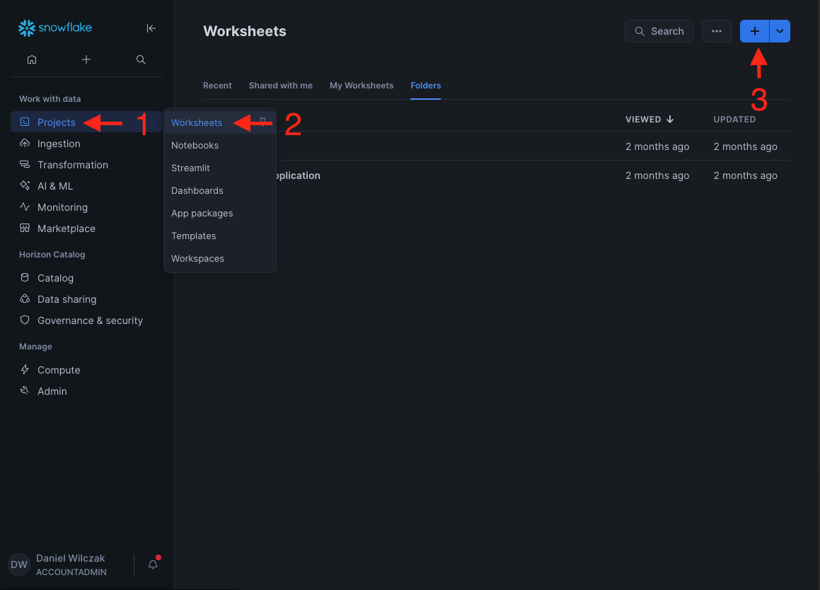 Lets open a worksheet (1) in snowflake and enter the code below by entering in the necessary areas from our federation metadata xml file.