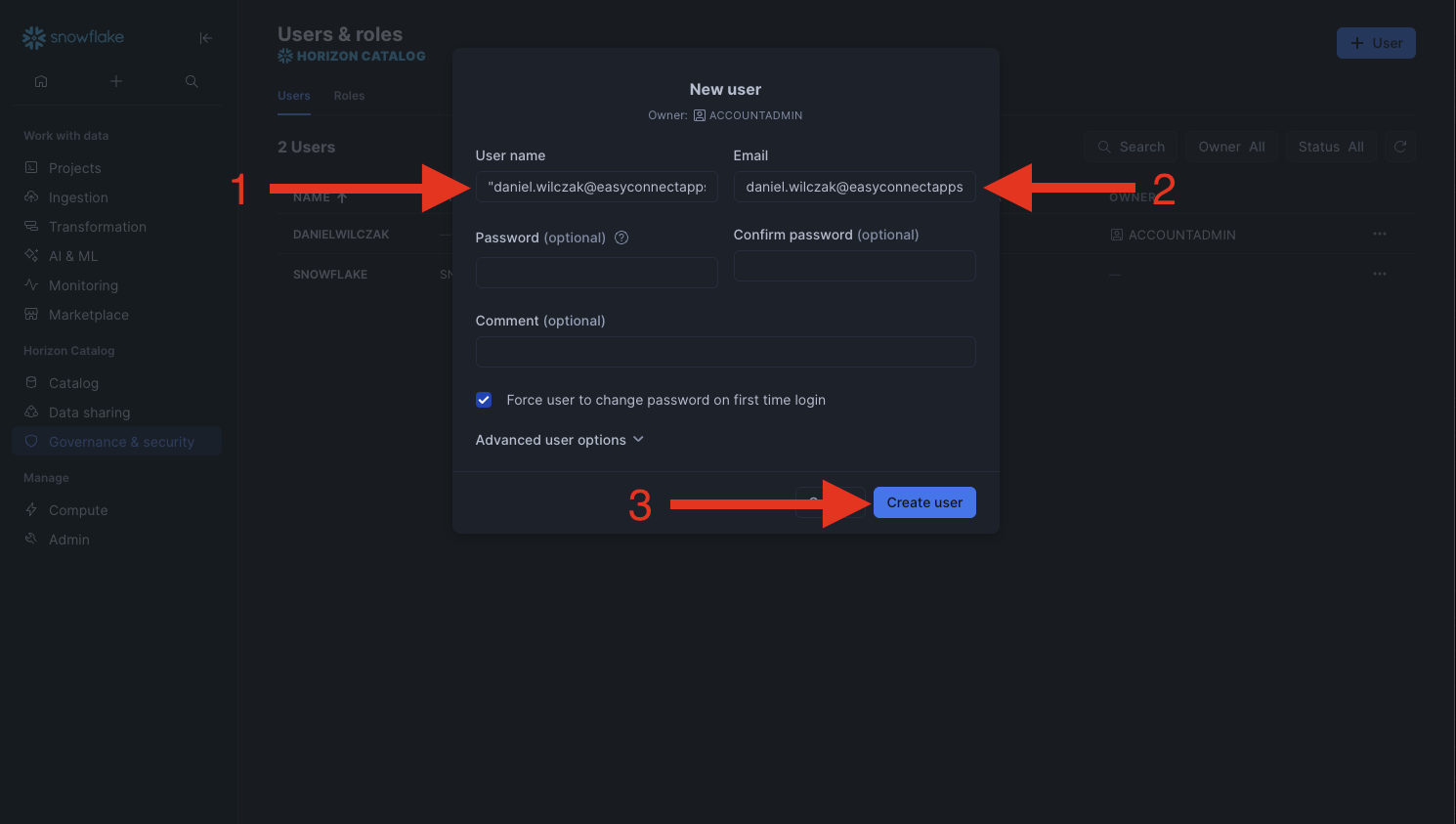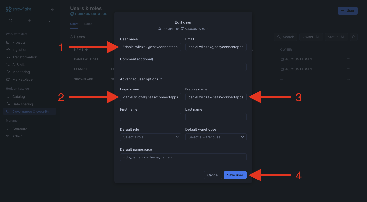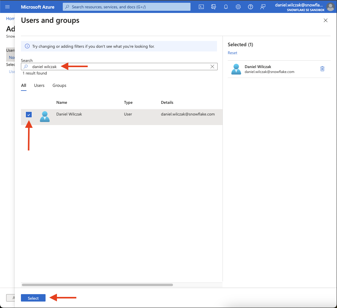 If you get an error stating the user doesnt exist, you either forgot to add the user in Azure or Snowflake.