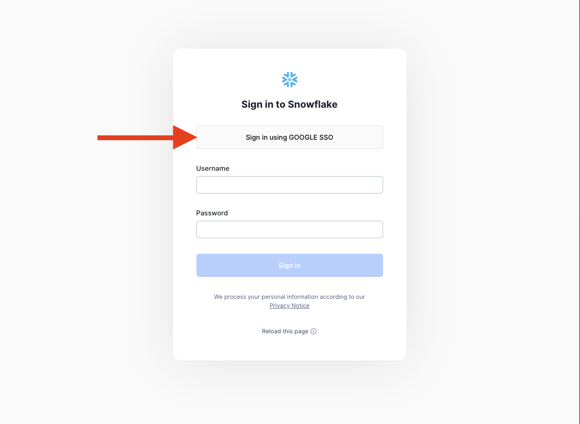 Now you should be able to go to your Snowflake login page and see the new Google SSO version.