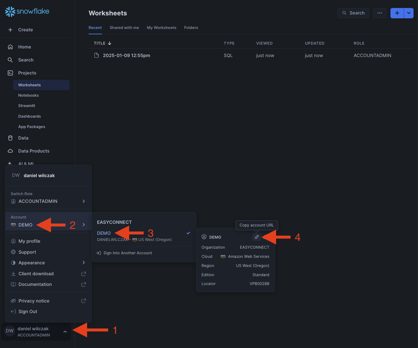 Now that we have our username setup, we'll copy our account url and add it to a worksheet. We'll need this later.
