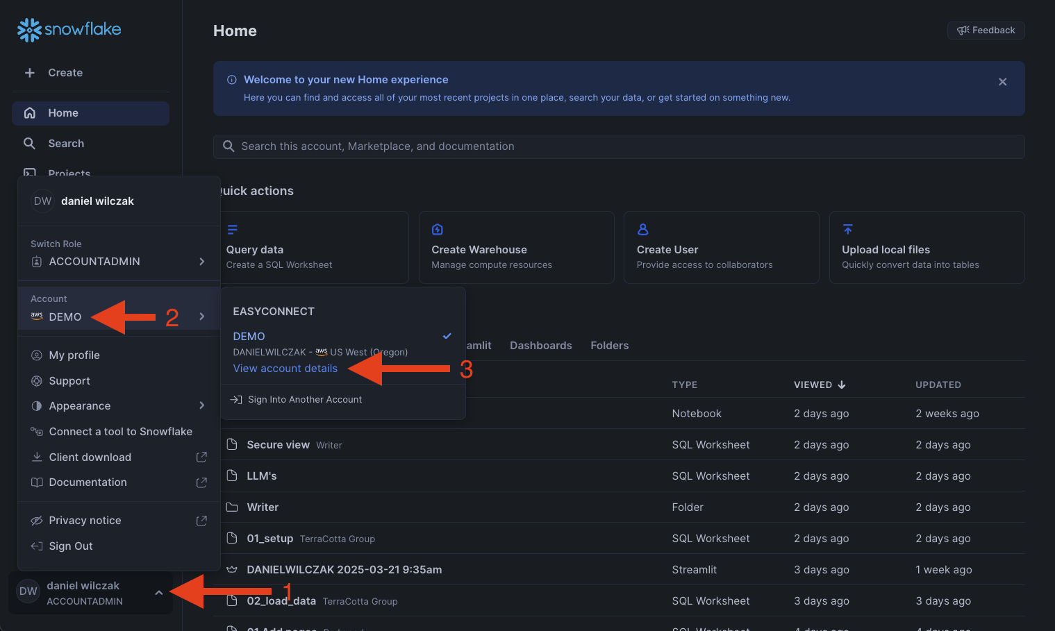 Lets start in Snowflake first.