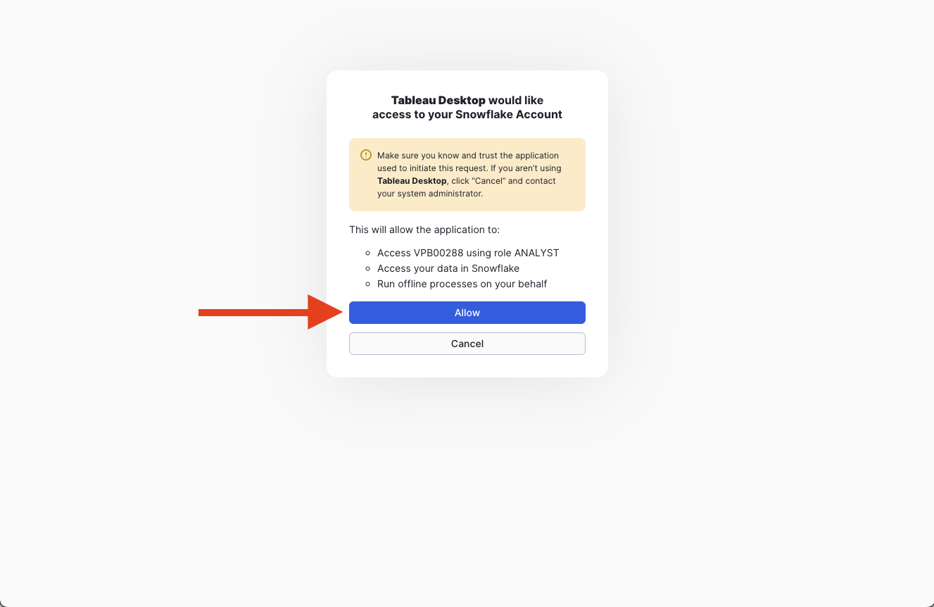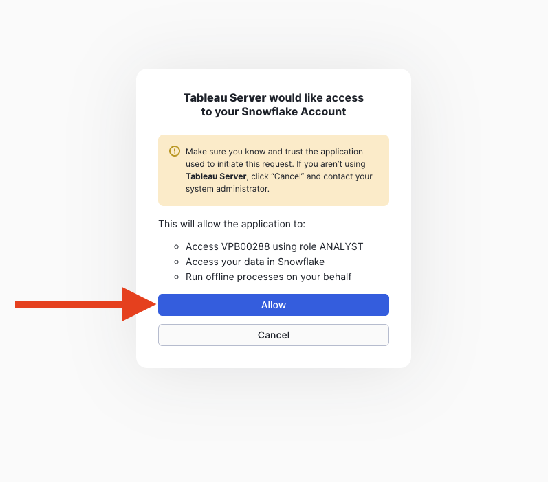 Click allow for tableau to connect to your Snowflake user.
