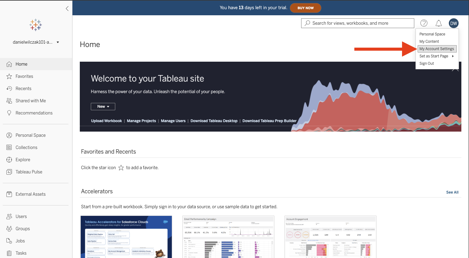 Go to "My account settings" on the top right.