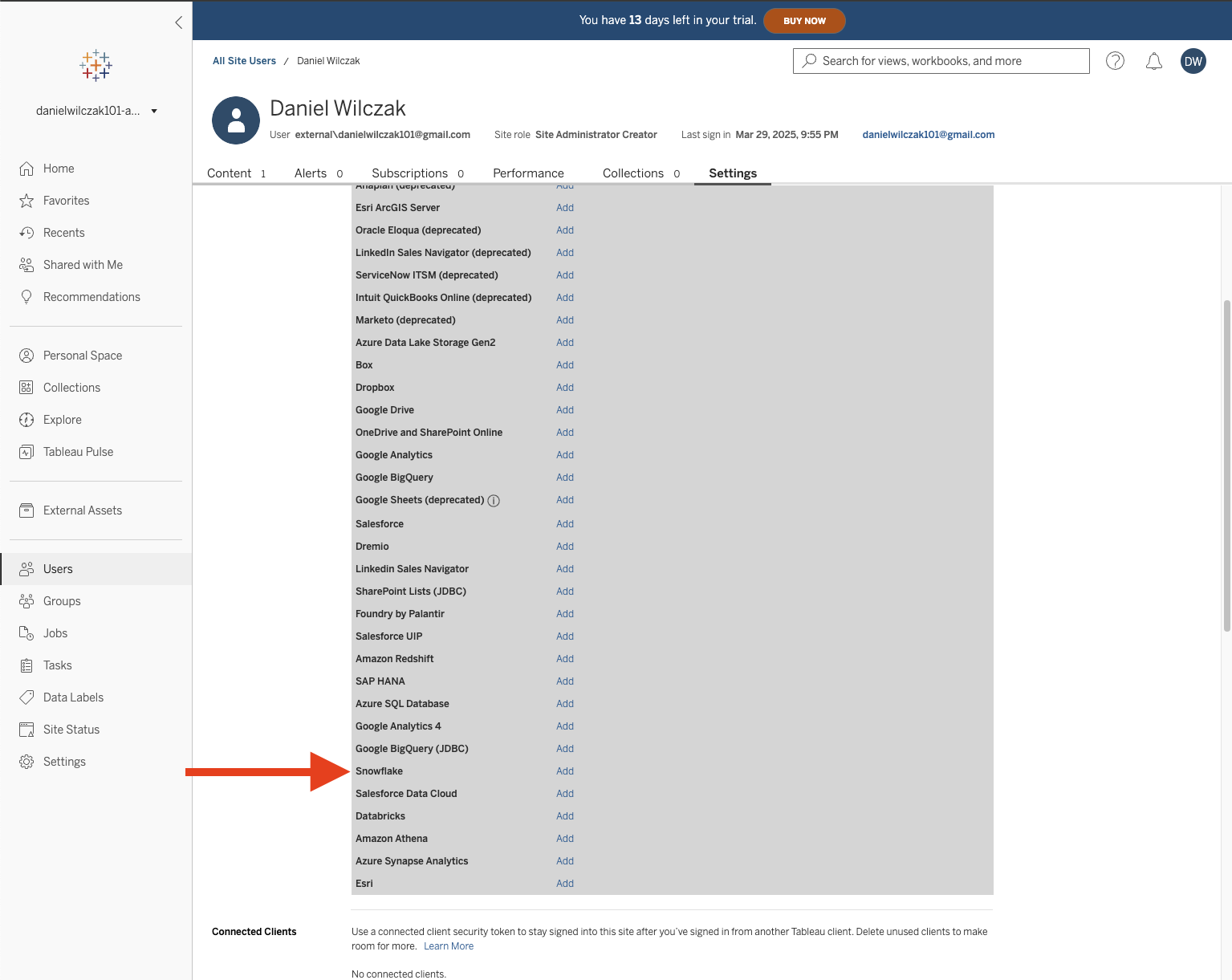 Allow tableau to use your user/role.