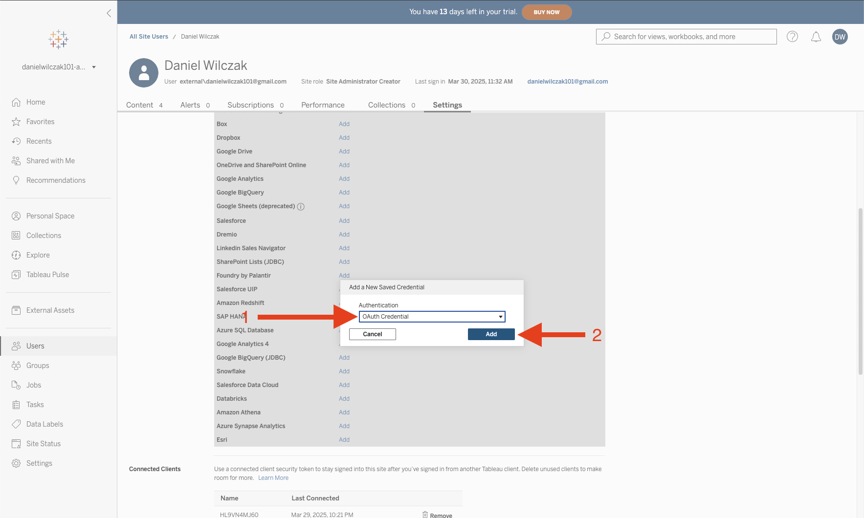Select "OAuth Credential" as authentication and click Add.